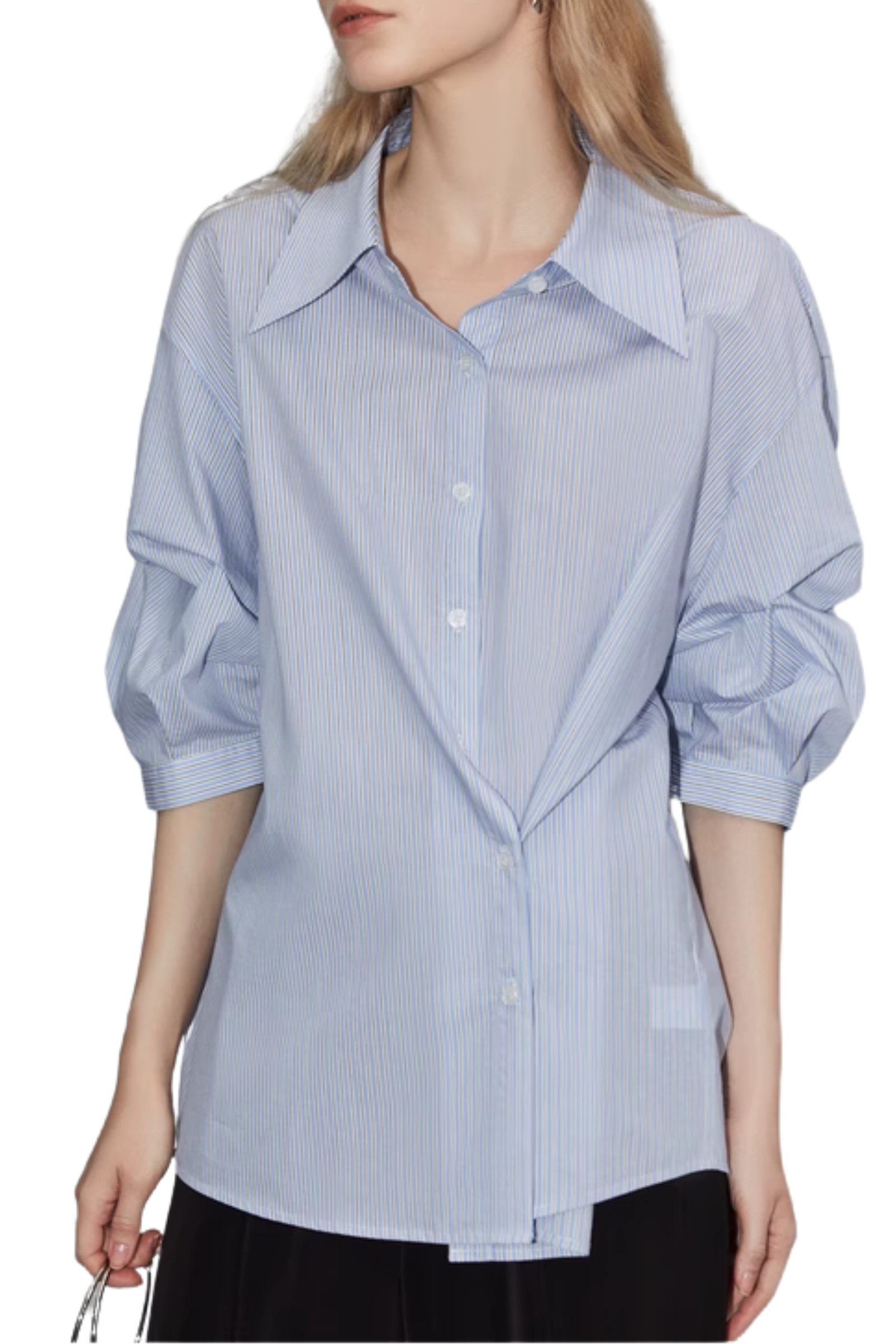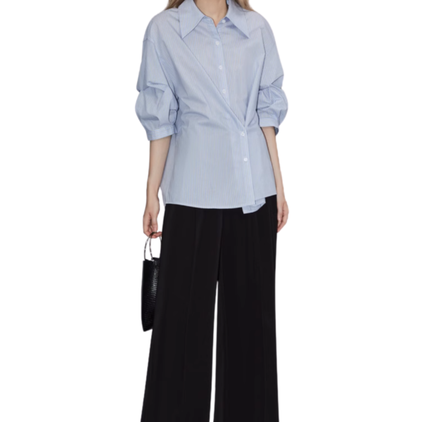 | Product Name | Blue Striped Oversized Shirt with Gathered Sleeves |