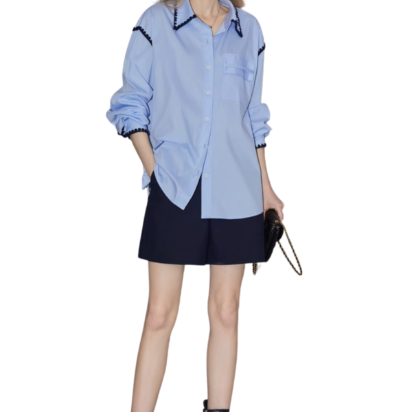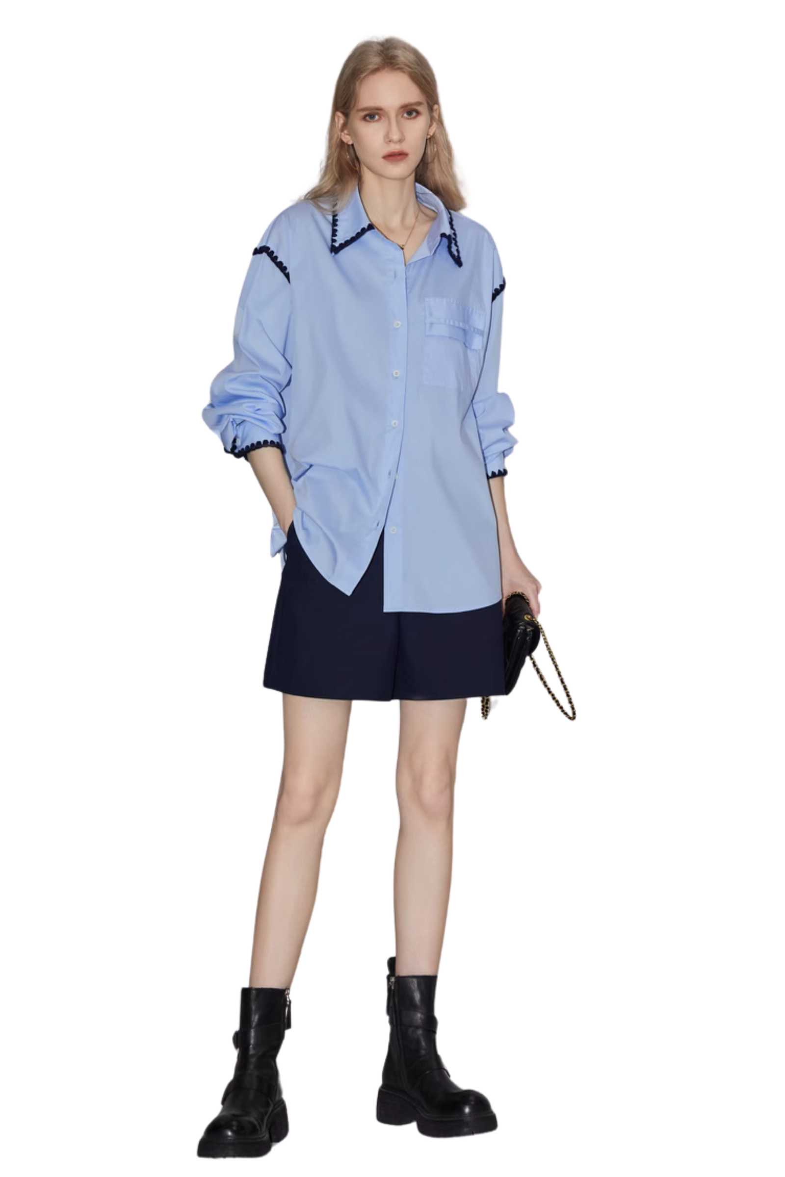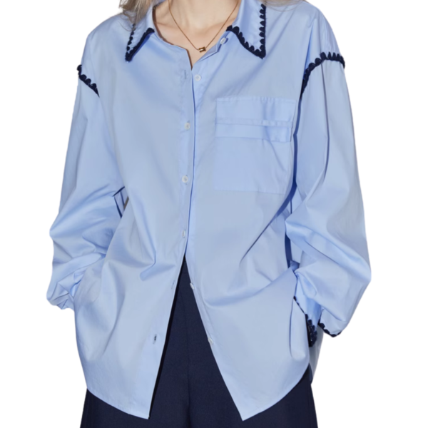 | Product Name | Sky Blue Oversized Shirt with Scalloped Trim |