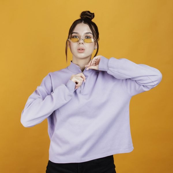 Stay cozy in style with this Lilac Quarter-Zip Pullover, crafted from a soft, mid-weight fabric that’s perfect for layering. The relaxed fit and ribbed cuffs ensure everyday comfort, while the high collar and quarter-zip design add a sporty, modern edge. Its soothing pastel shade effortlessly pairs with jeans, leggings, or joggers, making it a versatile wardrobe staple for running errands, lounging at home, or meeting friends for coffee.