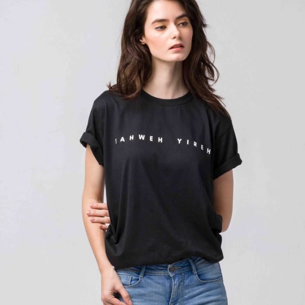 Elevate your casual wardrobe with this classic black T-shirt, featuring a bold white print across the chest that reads “Yahweh Yireh.” Crafted from soft, breathable cotton, it boasts a relaxed, comfortable fit suitable for everyday wear. The short sleeves can be worn rolled up for a laid-back vibe, while the simple crew neckline offers timeless appeal. Pair it with jeans, shorts, or layered under a jacket for a stylish, statement-making look that reflects both comfort and conviction.
